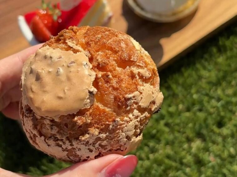店主おすすめシュークリームは、香ばしい生地に濃厚なカスタードがたっぷり。