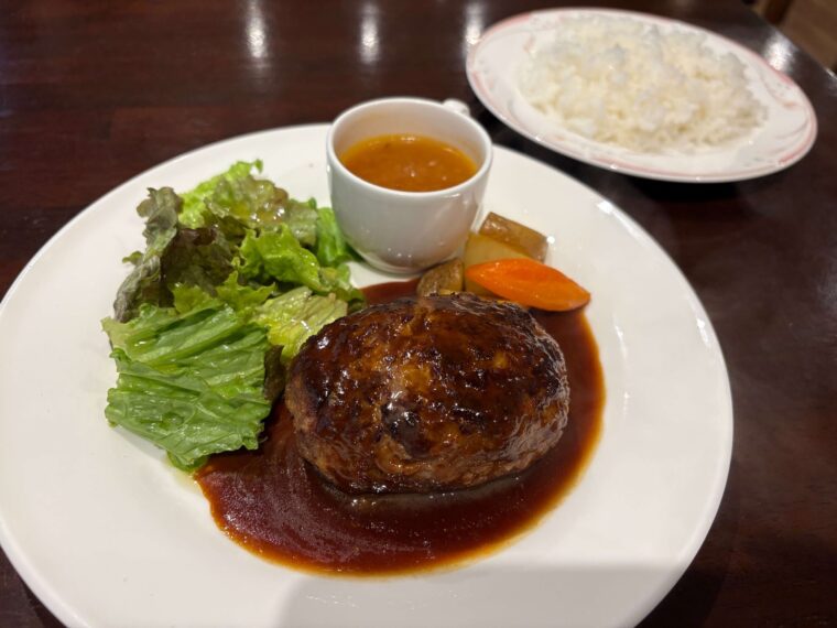 こちらの名物は、旨みがぎゅっと詰まった牛100%のハンバーグランチ。噛むたびに肉汁と香ばしさが広がり、ご飯がすすむ“にくにくしさ”が魅力です。
