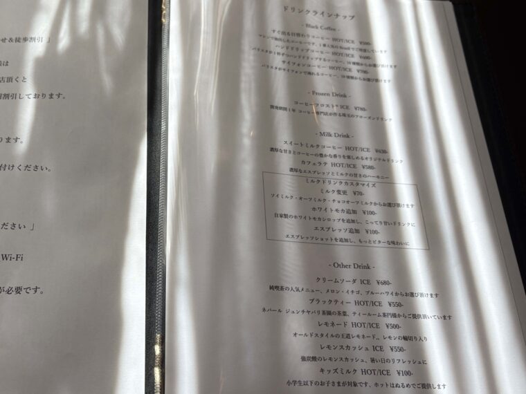 実際のメニューはこちら(2025年9月時点)