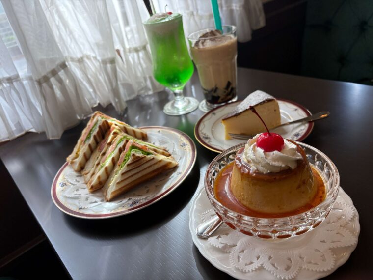 純喫茶風クリームソーダや、本店でも人気な開発に1年かけた「コーヒーフロスト」は必食の一品。プリンやチーズケーキなどのスイーツも魅力的なメニューが多く、とっても美味しいです。