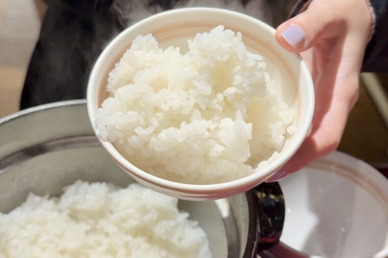 焼肉だけで終わらないのが、ホルモン喜八の良いところ。ごはんは、県産米を使った釜炊きごはん。炊き立ての香りとふっくら感が、お肉と相性抜群です。