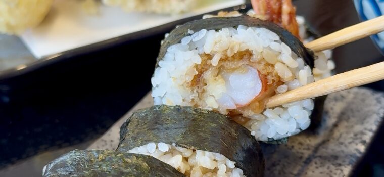 天むすは太巻きのようなボリュームで、食べ応え十分。